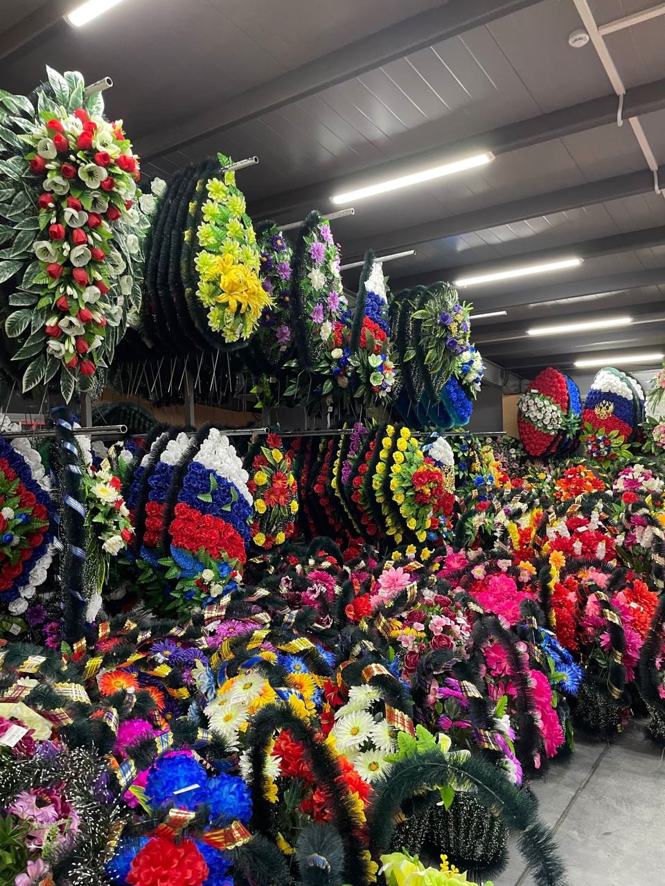 После сборки венков и корзин проходит этап финальной отделки: добавляются акценты, проверяется прочность конструкции и гармоничность дизайна.